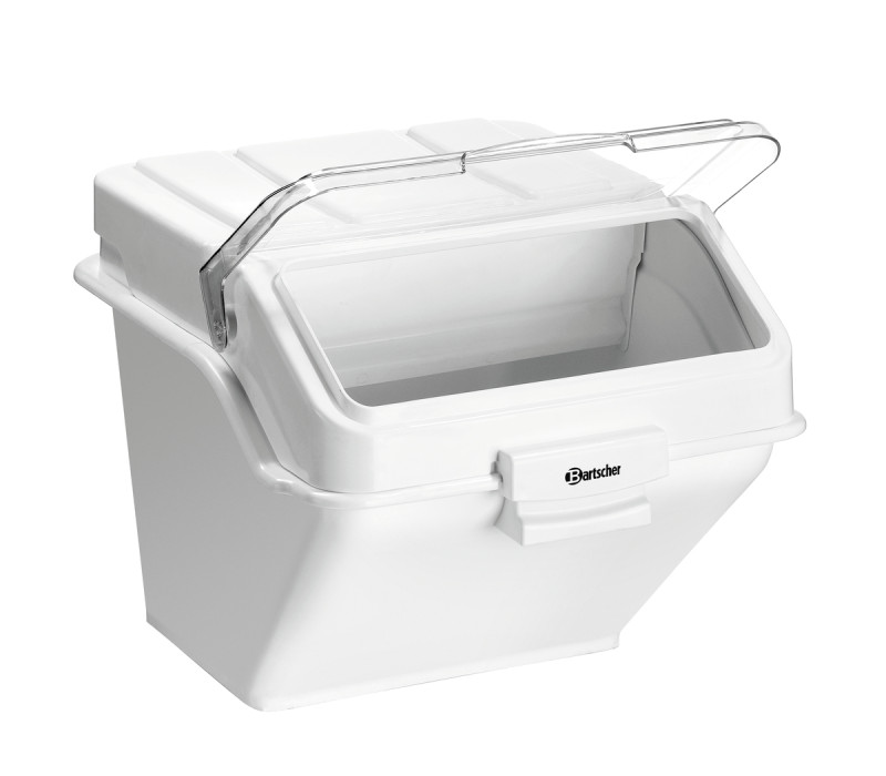 Robuuste, stapelbare voorraadcontainer voor een hygiënische bevoorrading van verschillende graansoorten en van specerijen, rijst of noedels. Het praktische transparante klapdeksel maakt een snel overzicht mogelijk van welke droge goederen zich in de container bevinden.
